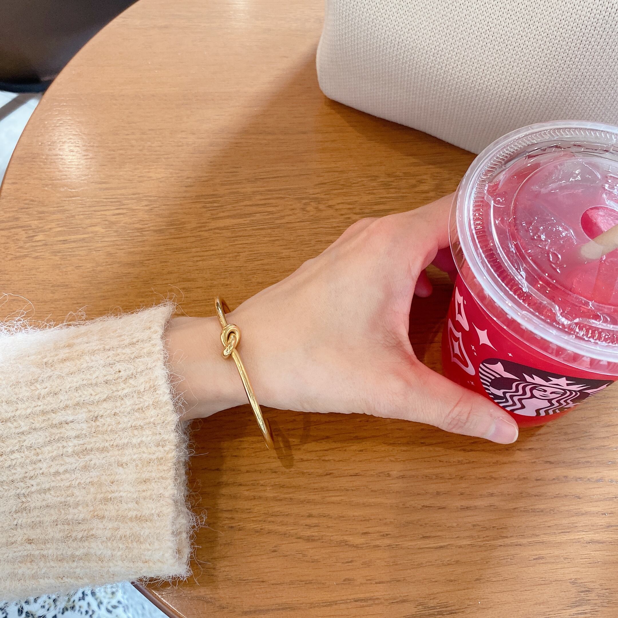 結びめのあるbracelet♡シンプルにゴールドで、これからの季節コートや袖の先からチラ見えしたときにも可愛さ抜群です♡