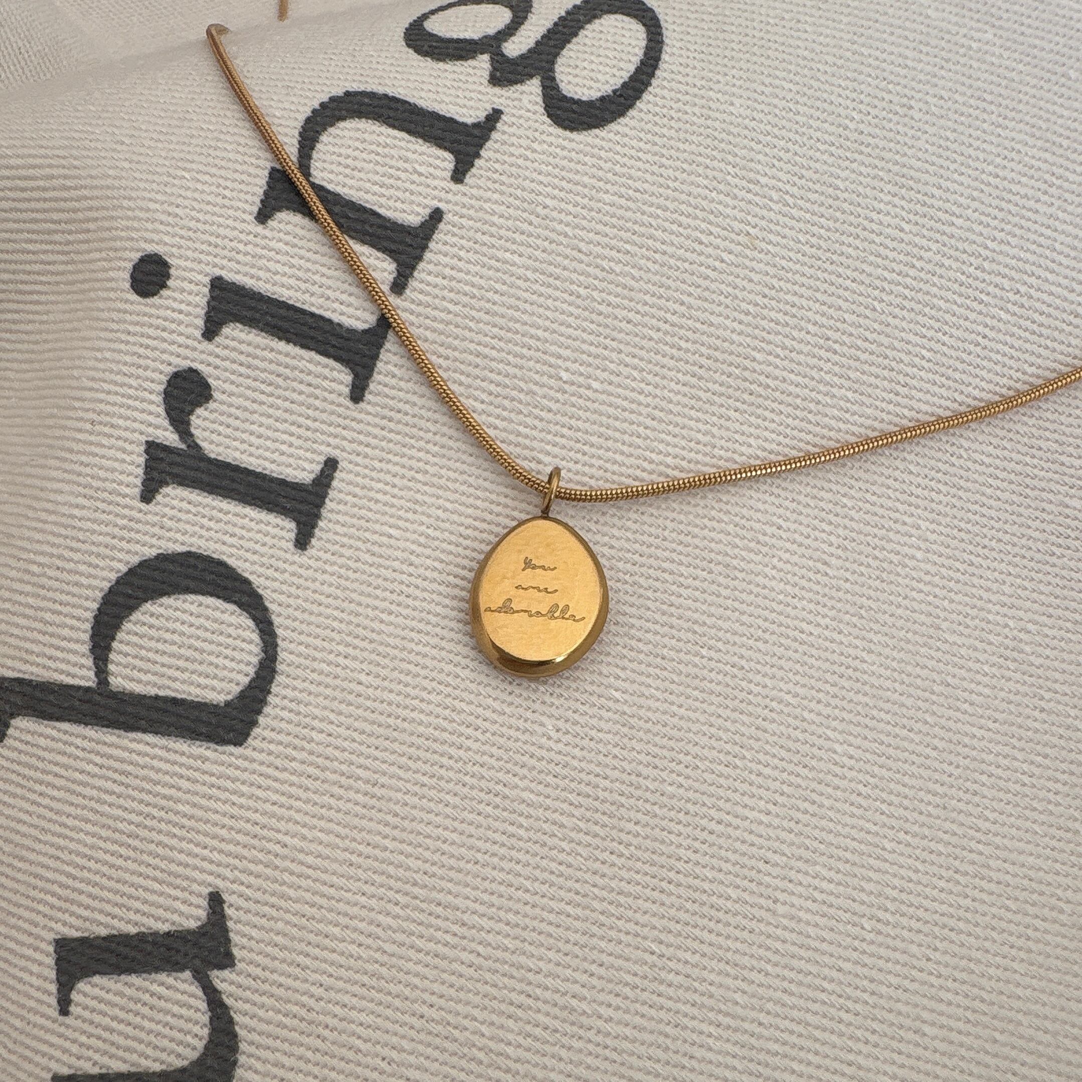コロンとしたモチーフに文字がオシャレなネックレス♡シンプルだからどんなコーデにもあいそうです♩
