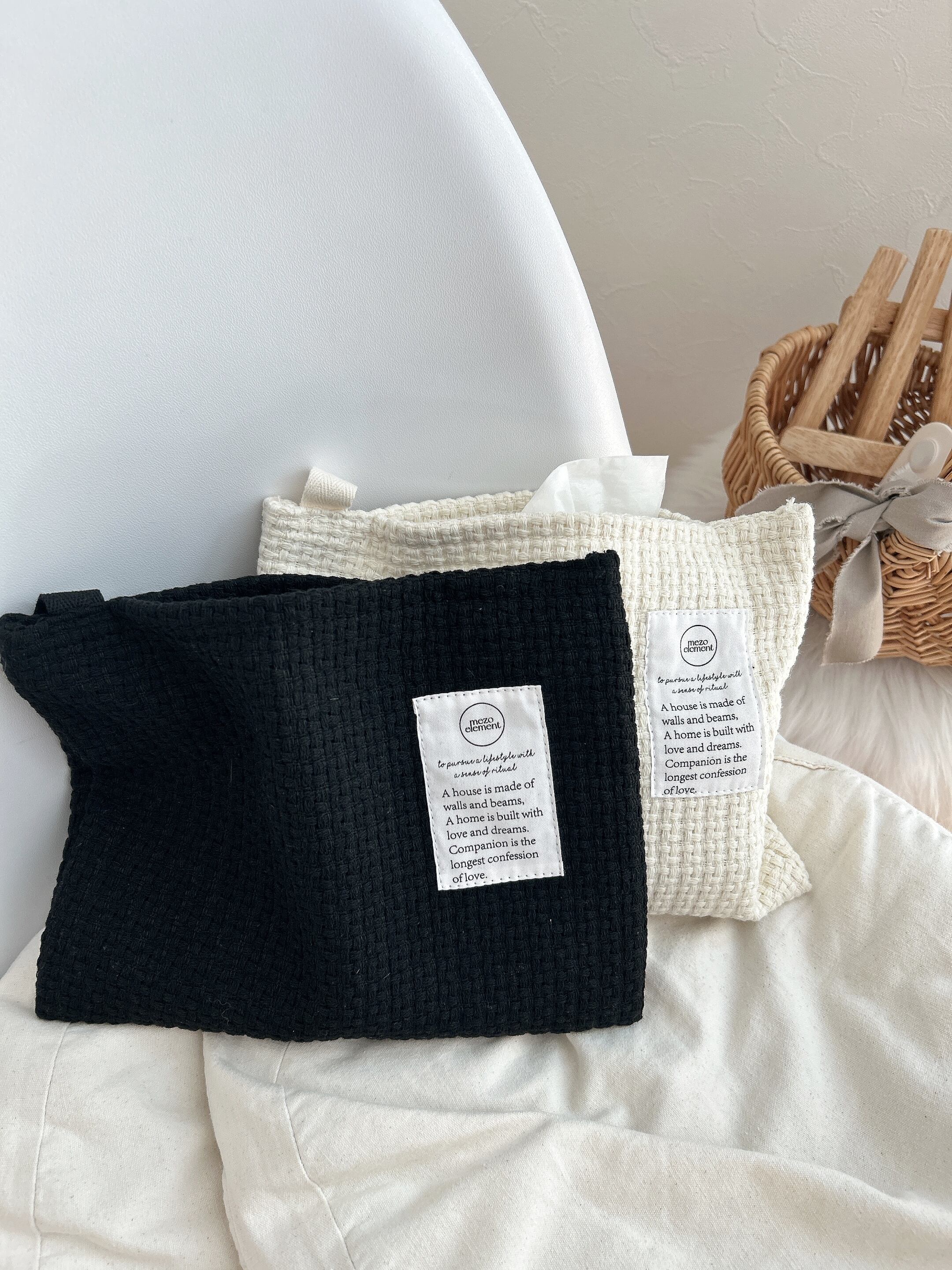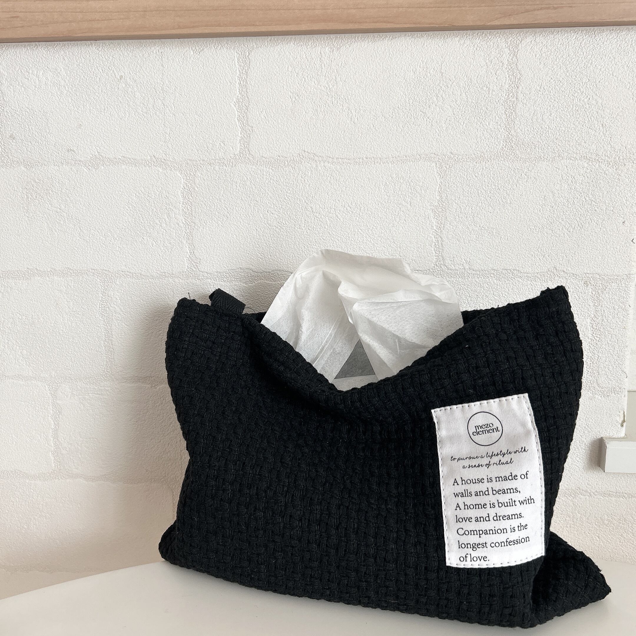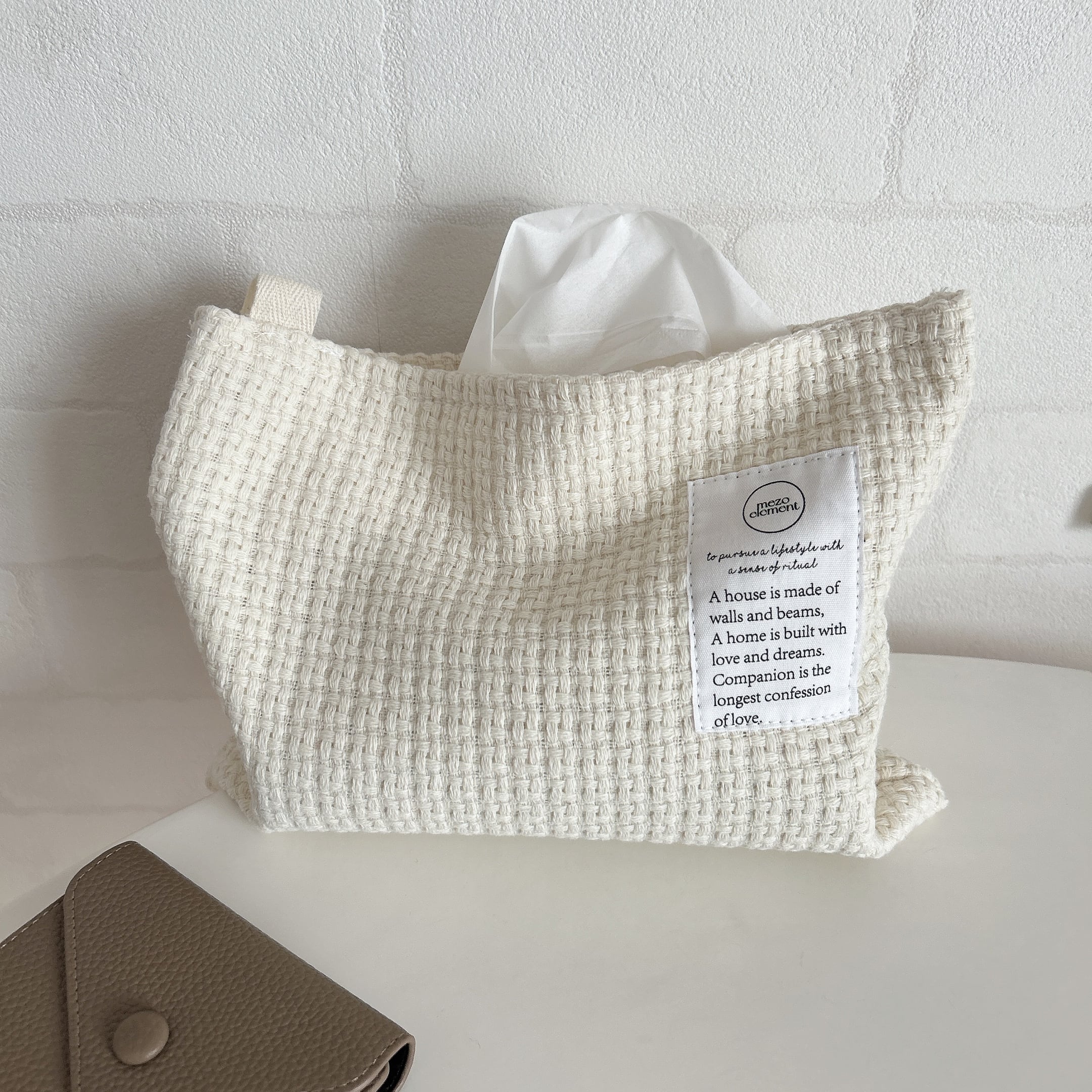 引っかけて使うこともできます♩ソフトパックティッシュが2つ入る大容量♡画像は一つ入っていて生地がたわむのが可愛いです♡